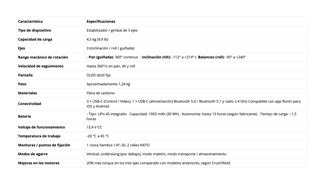 Estabilizador / gimbal de 3 ejes  soporta 4,5 kg (9,9 lb)