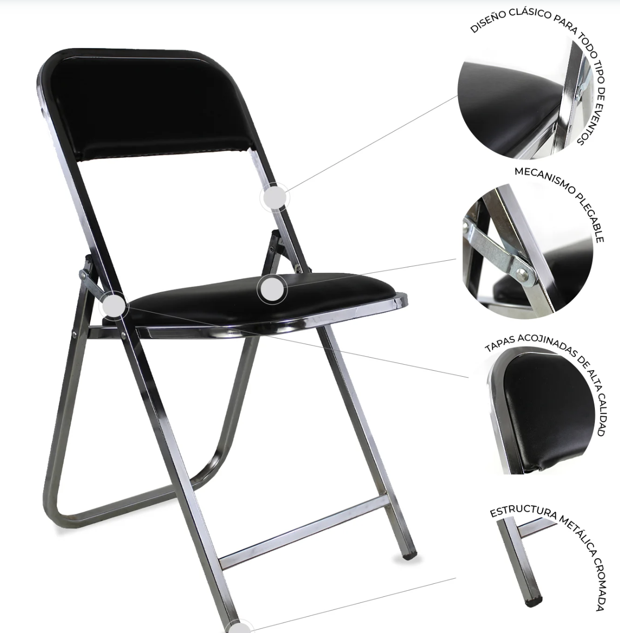 Una solución práctica y cómoda para producciones, eventos y sets, diseñadas con estructura metálica resistente y asiento acolchado que brinda mayor confort durante jornadas largas. Su diseño plegable permite fácil transporte y almacenamiento, mientras que su construcción robusta garantiza estabilidad y durabilidad, soportando uso continuo en locación o estudio. Son ideales para eventos, conferencias, producciones, crew, clientes, talento y video village, ofreciendo una opción funcional, profesional y rápida.